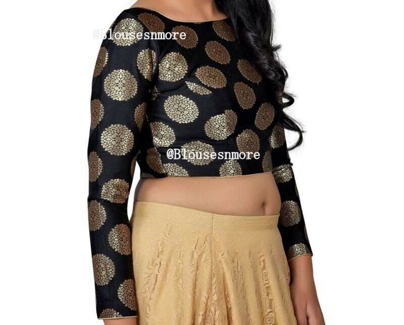 Black Brocade Silk Saree Blouse Readymade Saree Blouse Etsy Israel