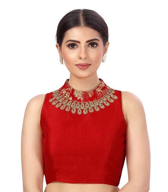 Red Readymade High Neck Designer Saree Blouse Floral Etsy