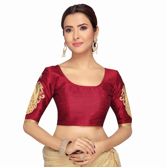Maroon Readymade Bride Designer Boat Neck Saree Blouse Etsy